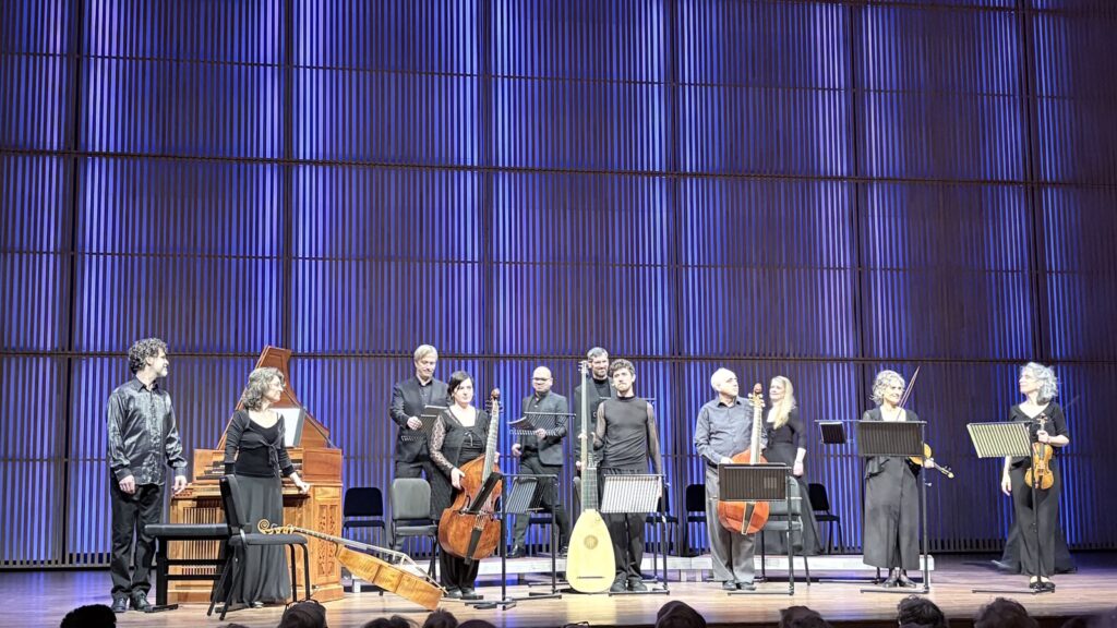 De avond begon met Buxtehude’s Triosonate in G majeur, BuxWV271. De twee violisten van Gli Incogniti, Amandine Beyer en Alba Roca brachten de afwisselende solo’s met virtuoze helderheid ten gehore, maar Beyers barokviool moest eerst nog op tempratuur komen. De Franse barokgroep bestaat al sinds 2006 en is vernoemd naar de Accademia degli Incogniti, een artistieke en academische kring uit het 17e-eeuwse Venetië. Ze delen met hun naamgever de voorliefde voor het onbekende in al zijn vormen, voor geluidsexperimenten, onderzoek naar nieuw repertoire, voor de herontdekking van de ‘klassiekers’ en van minder bekende meesterwerken.